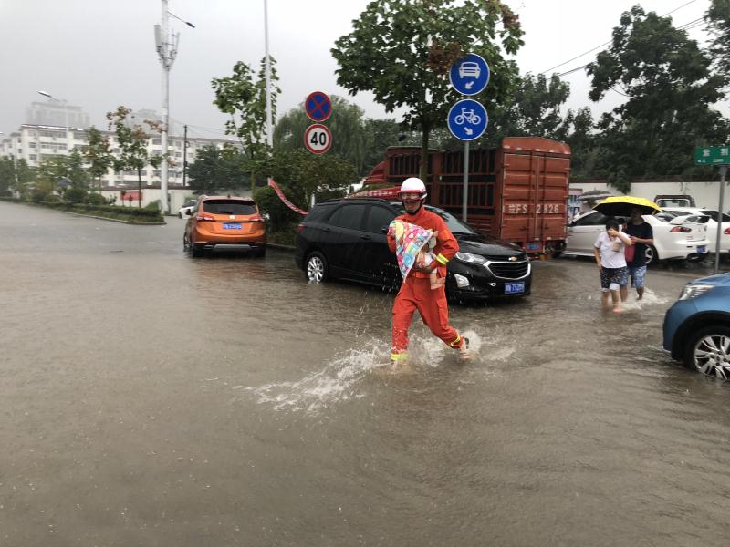 ▲商丘市消防支队睢阳大队出警,在被困水中的私家车里救出一名幼儿。