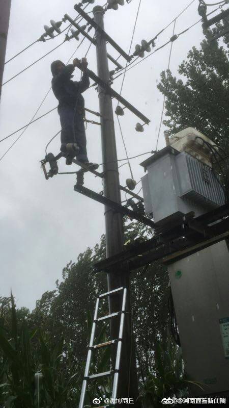 受暴雨影响,商丘电力设施受损严重,已造成3条35千伏线路、253条10千伏线路停运,停电台区8566个、用户64万户。商丘供电公司紧急启动防汛应急预案,出动应急抢修人员2152人、车辆281台,开展应急抢修工作。