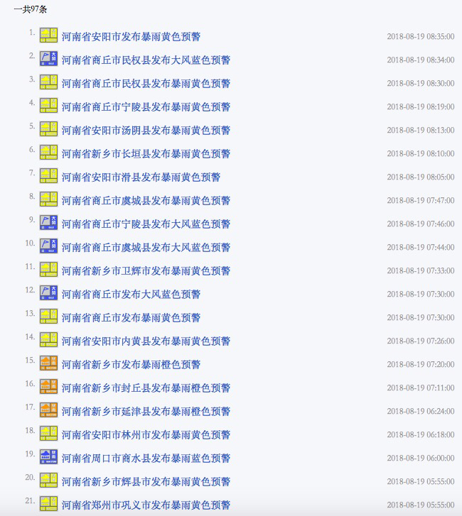 今日,河南多地仍继续发布暴雨、大风预警,安阳、鹤壁、濮阳、新乡、商丘、开封六地区部分地区有暴雨,局部大暴雨并伴有短时强降水、雷暴大风等强对流天气,各地仍要注意防范。