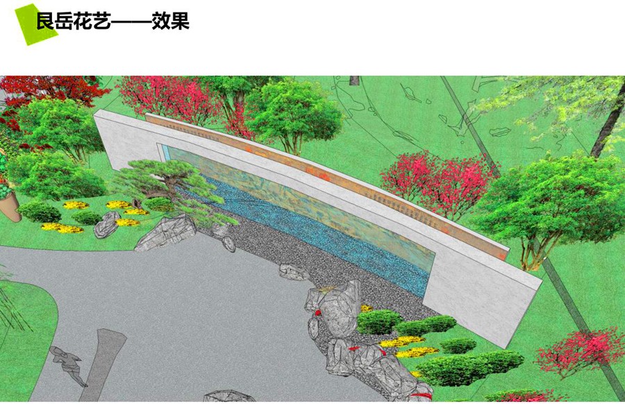 一心:通过主体汉字雕塑及花田的结合为入口打造大气明朗的第一印象。简洁明晰的入口空间可帮助游客适当缓解一路来的视觉疲劳,轻松入园。