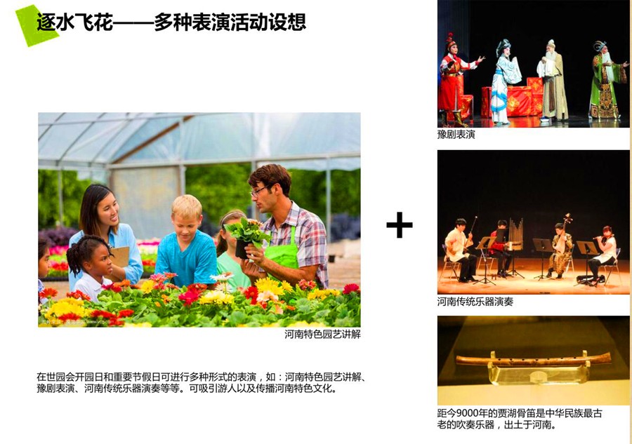 三园:为三个特色主题花园,分别表达河南园艺的历史、今朝与未来,展示河南特色园艺植物与文化、生活、生态的结合。