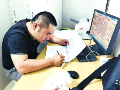 金水区总医院急诊司机师帅,在完善同事整理的手绘地图。