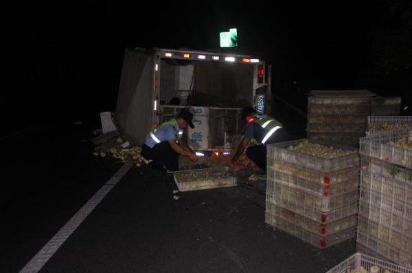 深夜货车发生故障,轮胎抱死致使车辆侧翻,高速公路上演万只“小鸡快跑”,货车司机急得满头大汗急忙报警,河南高速交警与高速路政紧急救助,帮助车主挽回了近七成损失,车主感动的握住民警的手不放,连声表示感谢!