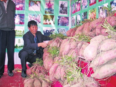 每年的中国农洽会,正阳县农民叶启营都来赶会,在会上展示他种的大红薯。