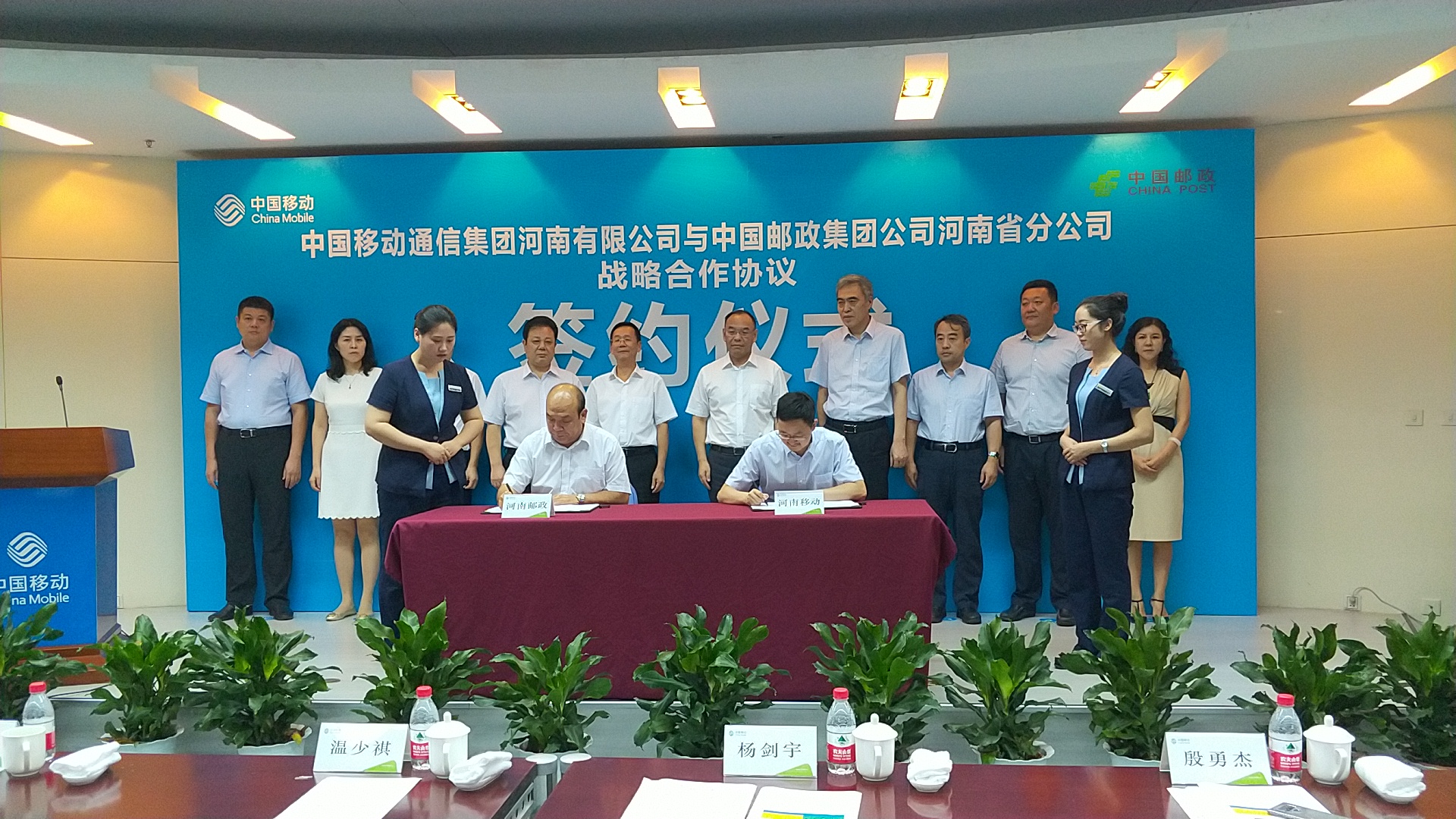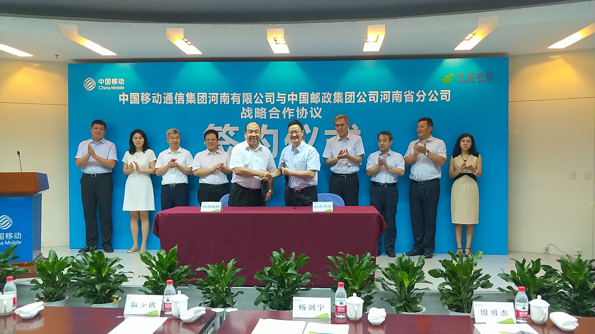 大河网讯(记者 祝传鹏)9月4日,中国移动通信集团河南有限公司和中国邮政集团公司河南省分公司签署《战略合作协议》,双方将在邮政业务、基础电信业务、渠道平台共享等多个领域开展合作,特别是将积极响应国家“精准扶贫”战略,共同助力我省精准扶贫工作,为精准扶贫提供优质网络、优惠流量、平台建设、信息服务以及普惠金融、物流仓储、邮件寄递、线上线下销售等相关服务。