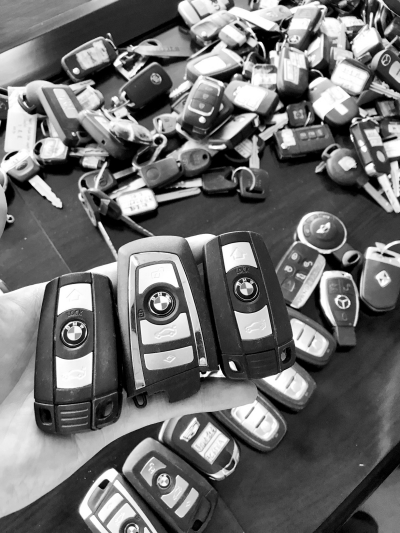 随后,民警又抱来一大堆涉案物品,有作案工具,也有涉案车辆的车钥匙等。该团伙暴力收车作案98起,涉案的百余把车钥匙堆在一起。大刀长矛成为作案工具。