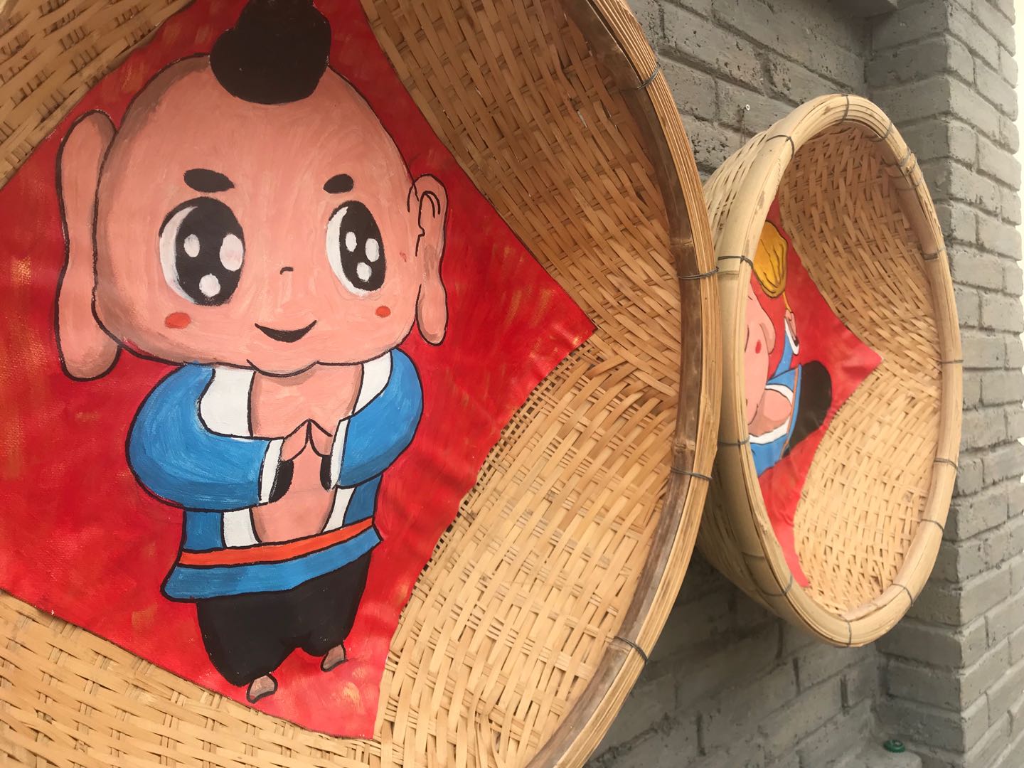 在农户餐馆,活泼可爱、带有古风情怀的卡通形象吸引了两岸记者的关注。七贤镇工作人员马路遥向记者介绍说:"这是七贤镇打造的镇域IP形象,是对‘竹林七贤’文化的再创作,用独具七贤特色文化的地方IP,提升产业发展,这一做法在全国乡镇尚属首次。"
