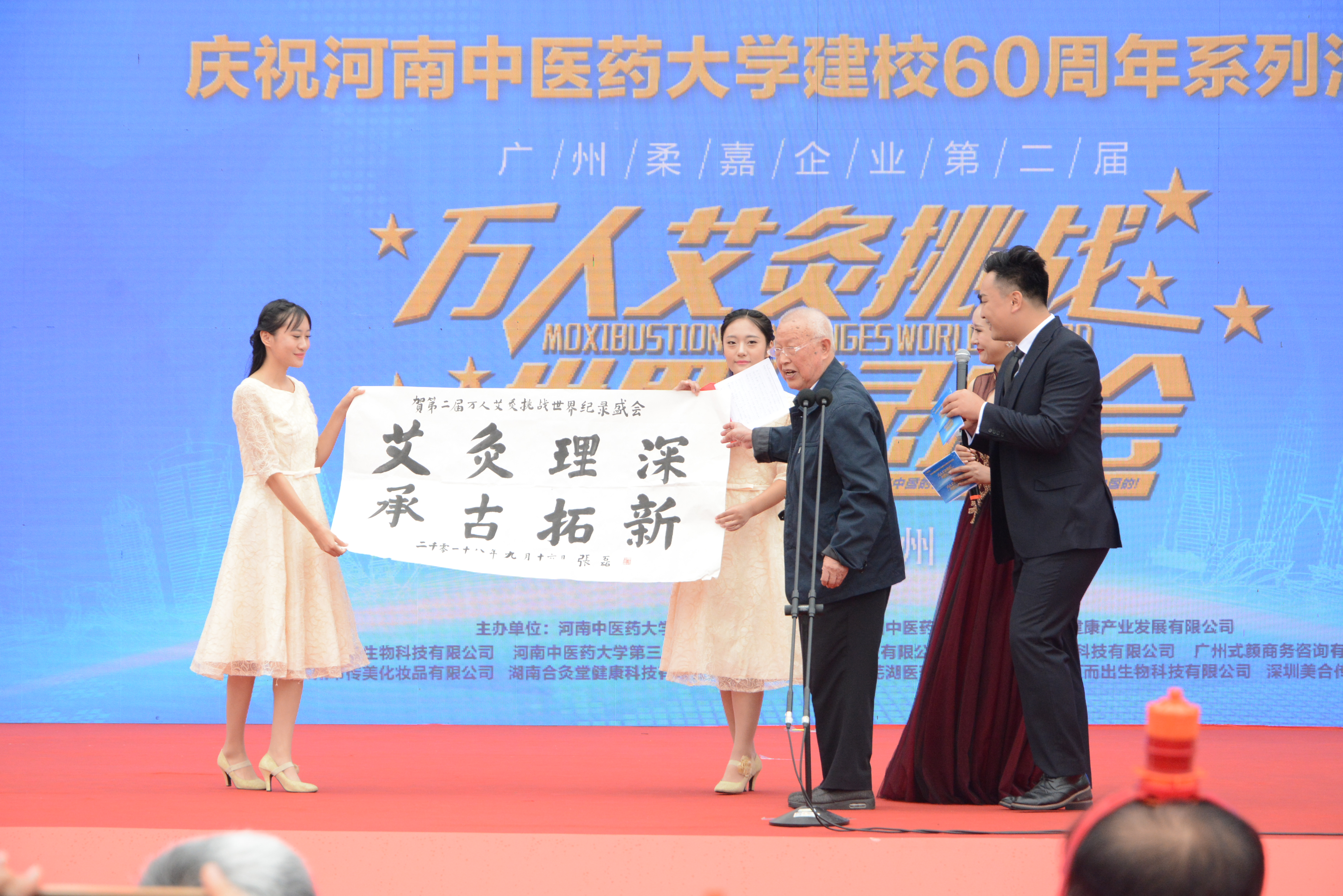 挑战开始前,国医大师张磊教授致辞祝贺并题字“艾灸理深,承古拓新”,预祝挑战圆满成功。