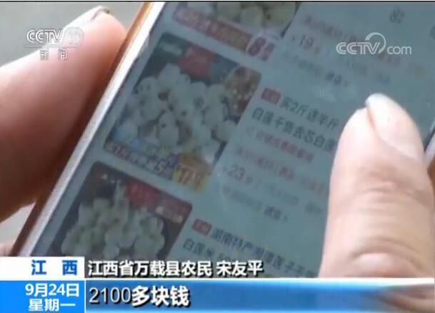 央视网消息:丰收带动增收,在江西万载,网上丰收购物节让农民宋友平的莲蓬莲子销售正旺,订单不断。