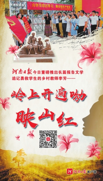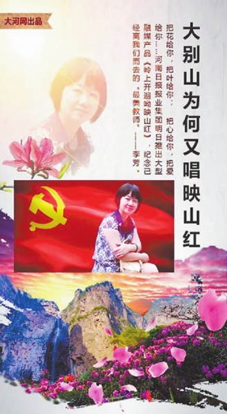 9月27日,河南日报推出一篇近2万字的纪实报告文学《岭上开遍呦,映山红》,大河网同步推送的4分29秒短视频——《大别山为何又唱映山红》,瞬间在朋友圈被刷屏。人们刷屏的不是那漫山遍野的映山红,而是李芳老师那在生死时刻做出的撼动人心的抉择。