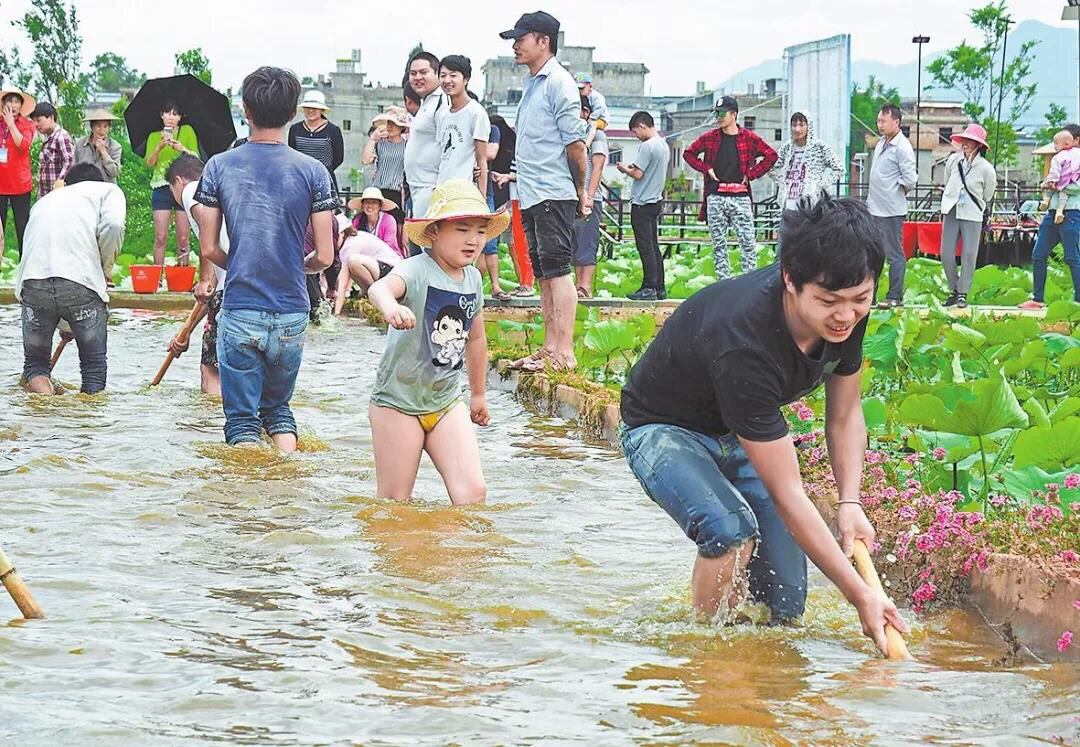 国庆假期,在济源坡头镇天女河马杨村,众多民众挽起裤腿,跳下小河浑水好摸鱼,看到肥鱼就逮,你争我抢,玩的不亦乐乎。此外,当地还准备了水上自行车、亲水醉体验、美食烧烤等丰富的休闲项目,力争使游客玩的开心、吃的舒心。