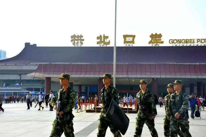 国庆节第一天,我国第一大陆路口岸——拱北口岸迎来了内地旅客集中出游澳门的客流高峰。担负口岸武装巡逻任务的武警广东总队珠海支队官兵每天执勤时间超过14个小时,为旅客创造了安全和谐的假期氛围。