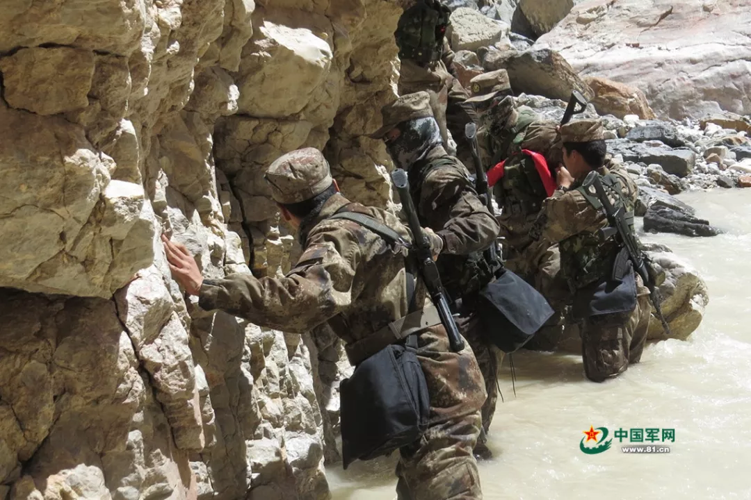 上有落石下有激流,巡逻分队通过危险的高原峡谷地段。牛德龙 摄
