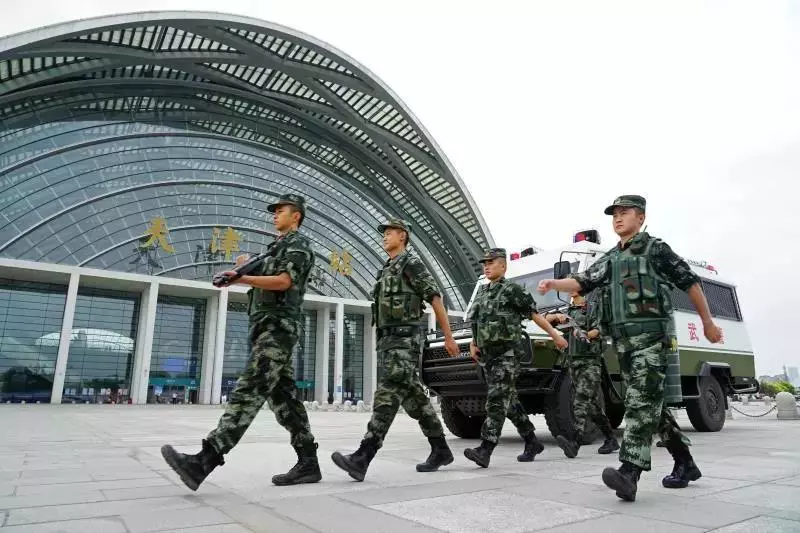 在天津,为了给驻地旅客安全祥和的国庆节假日秩序,10月1日起,武警天津总队执勤第一支队组织执勤官兵在车站、景点交通枢纽开展执勤巡逻任务,确保群众假期出行和游玩安全。执勤期间,官兵在维护秩序的同时还向旅客提供咨询服务,为过往游客指引道路解决困难,用真情服务为旅客平安护航,向中外旅客展示了中国军人的良好形象。