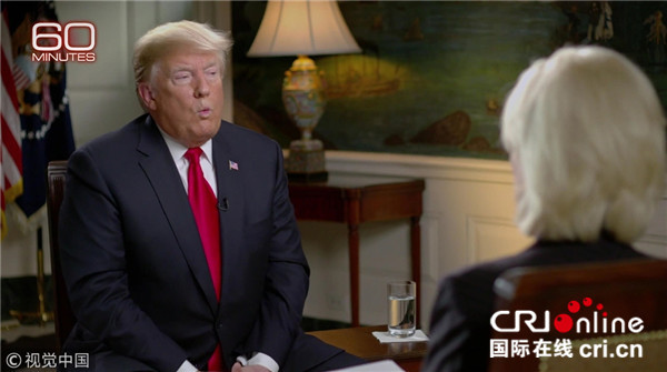 当地时间2018年10月14日,美国总统特朗普接受哥伦比亚广播公司(CBS)主播莱斯利·斯塔尔采访。