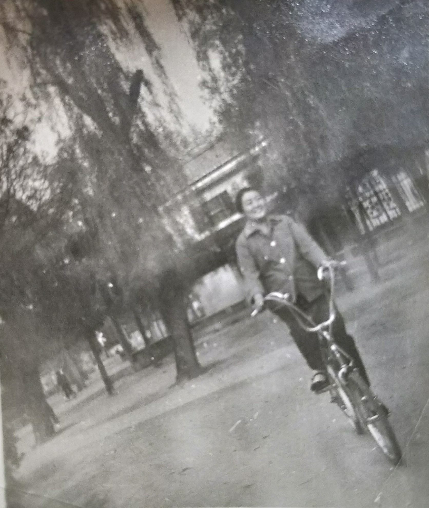 上世纪七十年代,岳母刚参加工作不久,每个月只有20多元工资,十几个同事每人兑10元,凑了140元(当时称为“兑汇”,是当时非常流行的一种集资互助形式。)买了人生中的第一辆自行车,骑着它就去照了张照片留念。