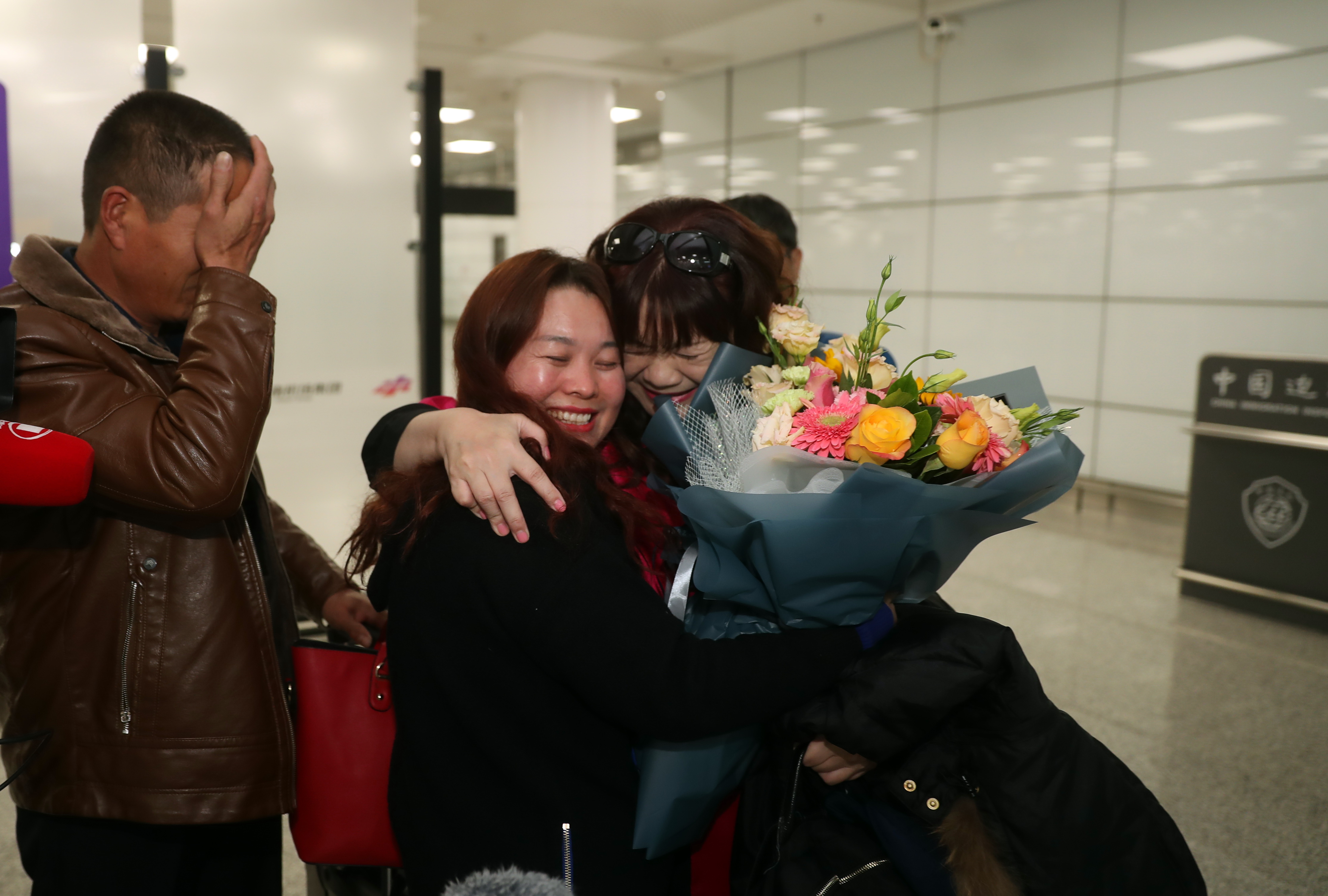 在新郑机场迎接史豫秀的不仅有鲜花还有家人的拥抱