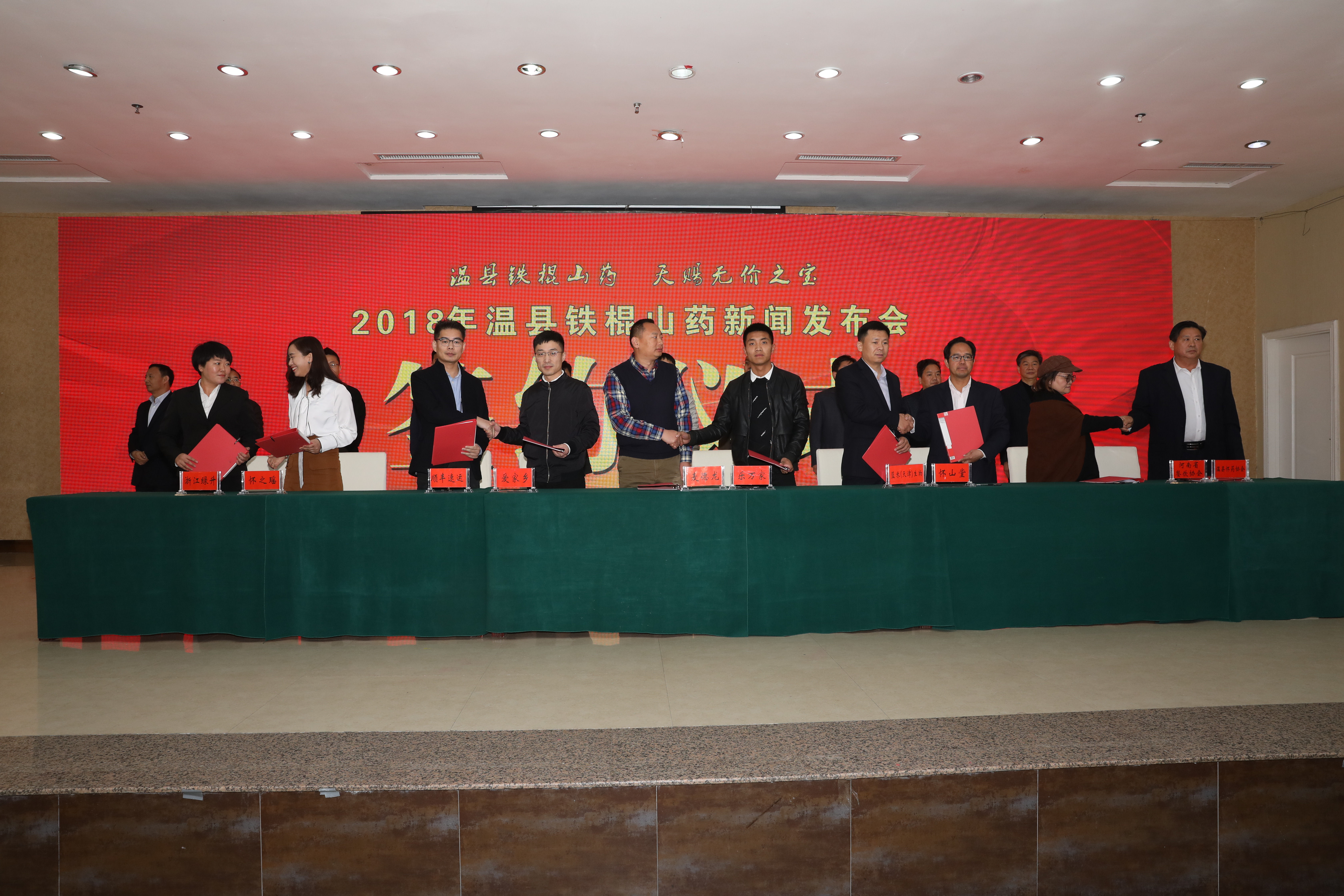 此次发布会还增加了合作签约环节,温县怀药协会与河南省餐饮协会、怀山堂生物科技有限公司与蓝米(天津)生物科技有限公司、乐万家合作社与麦德龙股份公司、温县爱家乡文化传媒公司与河南顺丰速运有限公司、温县怀之瑶商贸有限公司与浙江绿升物业服务有限公司河南分公司分别签署了合作协议,与会人员共同见证了农企对接、强强联合、合作共赢的美好时刻。(王辉 许宏伟)
