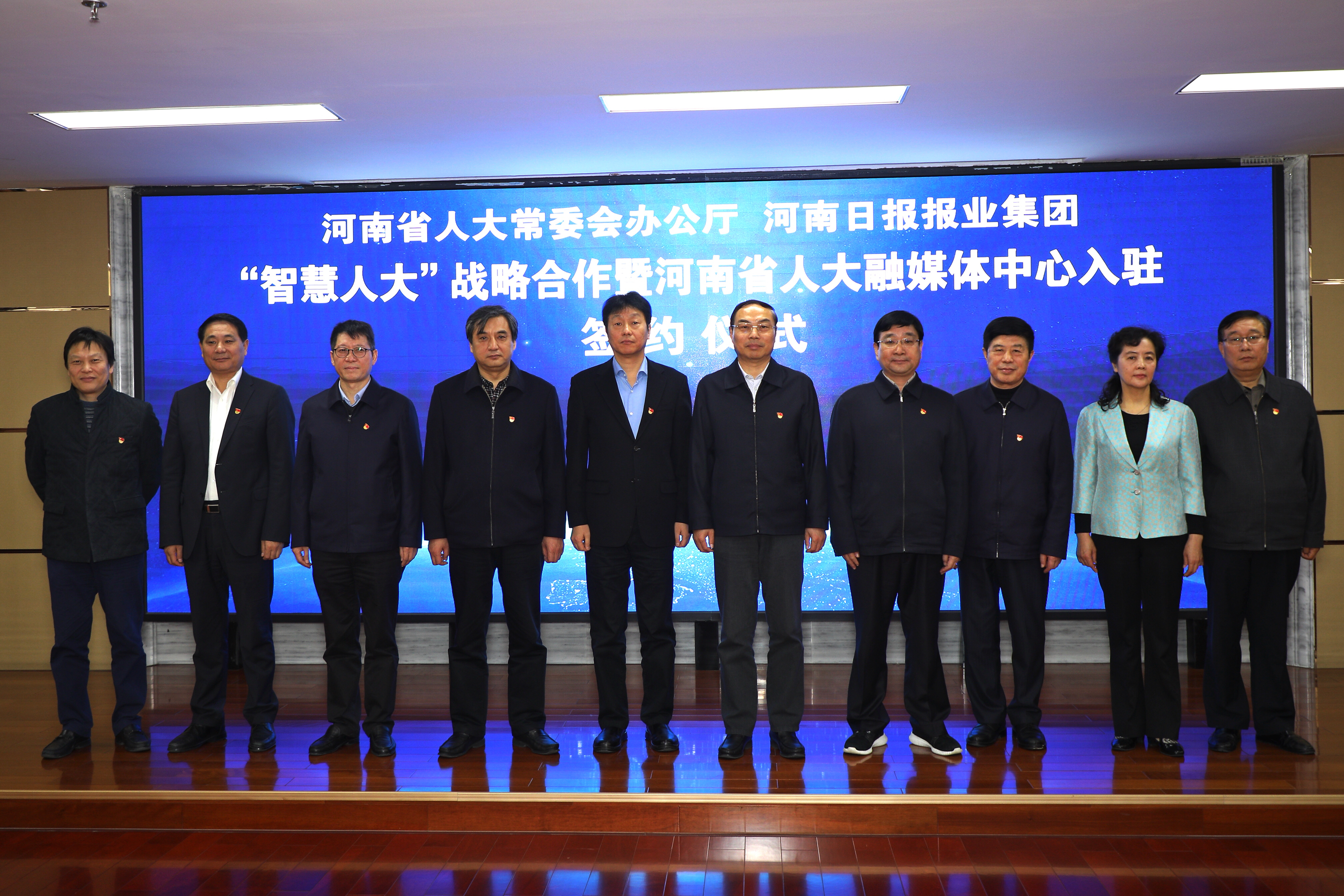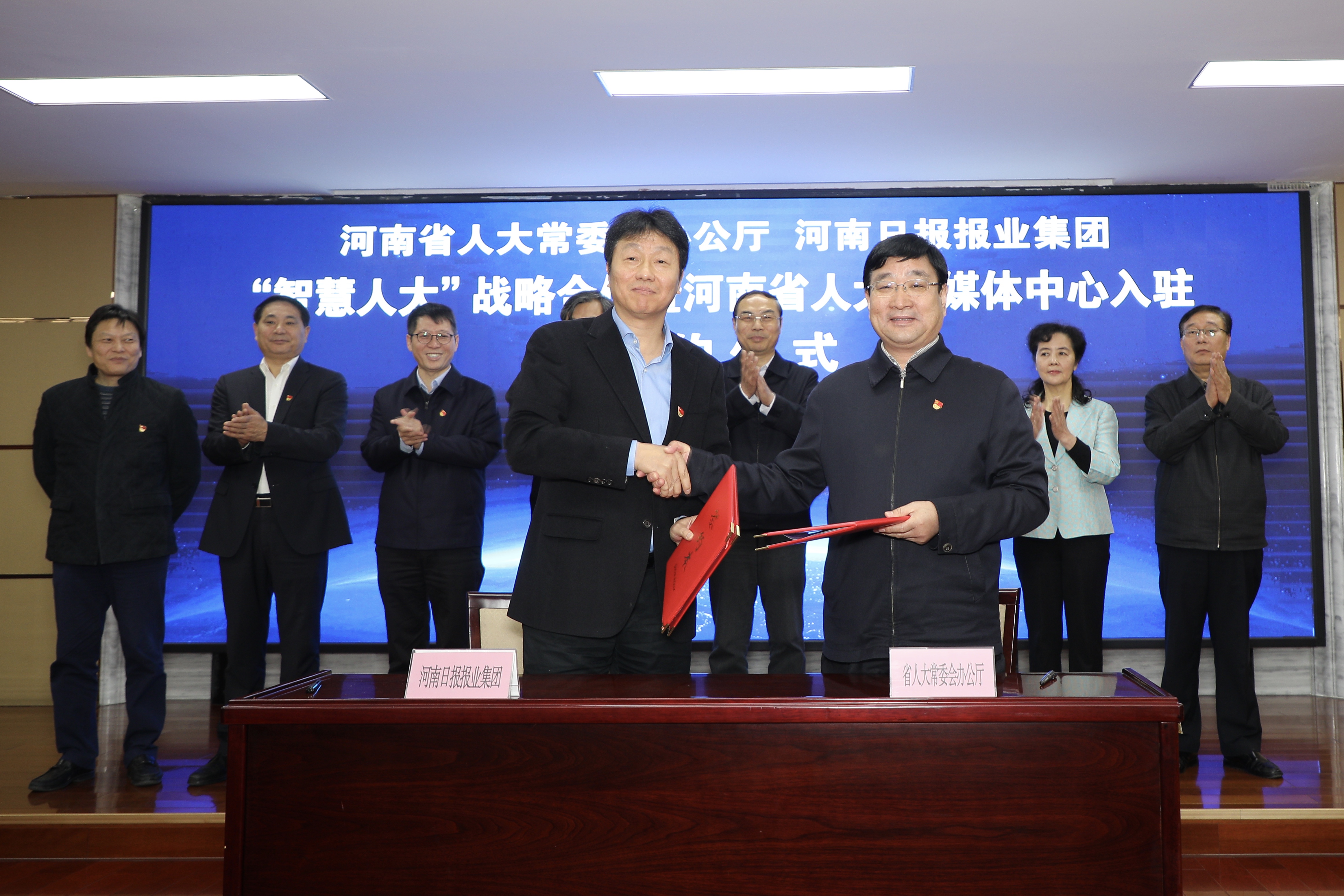 出席签约仪式的还有省人大常委会选任联工委副主任李广胜,副秘书长、机关党委书记李经超和河南日报报业集团党委副书记、总经理张光辉,河南日报报业集团党委委员、大河网络传媒集团董事长王自合,大河网络传媒集团总经理韩嘉俊、总编辑孟磊。