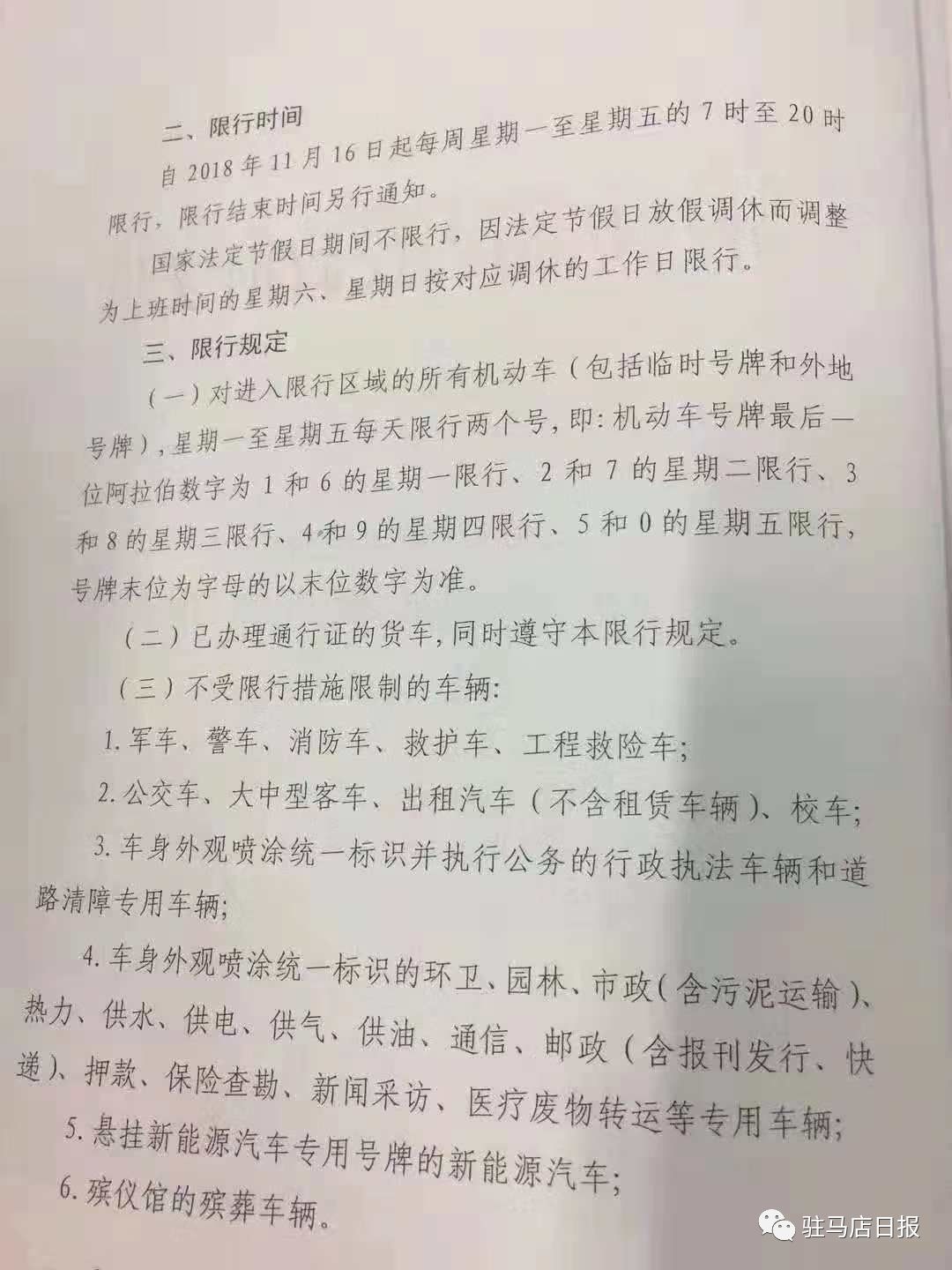 遂平县(限行时间变更) : 单双号限行,周一至周五每天7~20时限行(周六、周日不限行),外地号牌不限行。