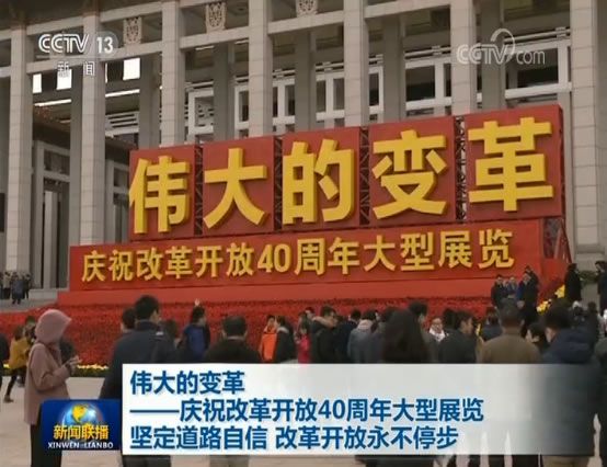 央视网消息(新闻联播):“伟大的变革——庆祝改革开放40周年大型展览”展览从昨天(14日)开始对公众开放,改革开放40年来的伟大变革引发观众共鸣,更加坚定走中国特色社会主义道路、改革开放道路的信心和决心。