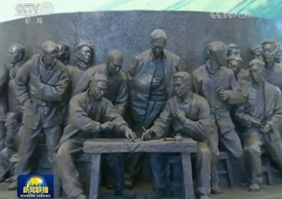 安徽小岗村18位农民按下包产到户“红手印”的雕塑,展现深圳从当年落后小渔村成为现代化大都市的视频,上海陆家嘴高楼林立的实景沙盘,一个个改革开放的地标,生动讲述了40年来,尤其是党的十八大以来,中国经济社会发展的历史跨越,人民生活翻天覆地的变化和迈向世界引领未来的大国气象。