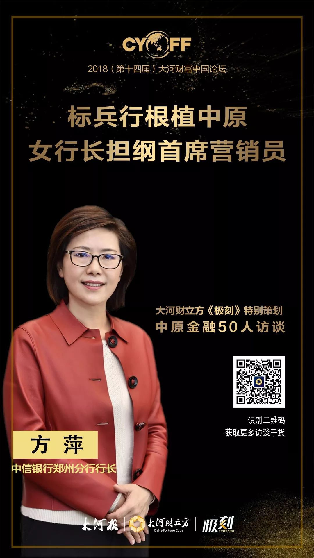 “好成绩都是拼出来的!在处于经济调整期的今日,更需脚踏实地的拼搏精神。”11月19日,接受大河财立方《极刻》专访的方萍如是说。出任中信银行郑州分行行长八个月以来,这是她首次接受媒体采访。