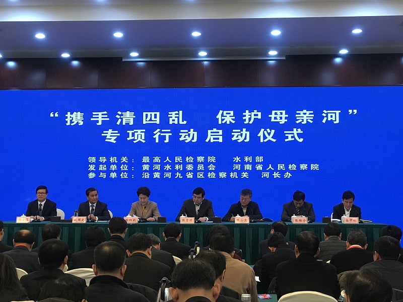 在最高人民检察院、水利部共同领导下,由黄河水利委员会与河南省人民检察院共同发起了“携手清四乱、保护母亲河”专项行动,沿黄河流域的青海、四川、甘肃、宁夏、内蒙、山西、陕西、山东等9省区的各级检察机关、河长制办公室也共同参与。