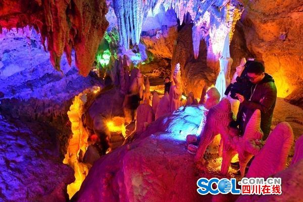 视觉从天空转自地下,拾阶而下,巴山大峡谷总长400米,垂直高差近20层楼的溶洞里,媒体团感受到了人工与自然共生共存的旅游打造理念。