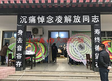 今天下午4时许,大河报·大河客户端记者赶到南阳市殡仪馆,二月河先生的灵堂正在紧张布置中。“沉痛悼念凌解放同志”的黑色横幅庄严肃穆,“寿终德望在,身去音容存”的挽联分挂在灵堂两侧,悼念的花圈摆满门外。二月河先生安静地躺在这片他生活了半个多世纪的南阳。前来悼念的亲朋、好友、读者络绎不绝,大家心情沉痛,含泪见二月河先生最后一面,与家属一一握手。
