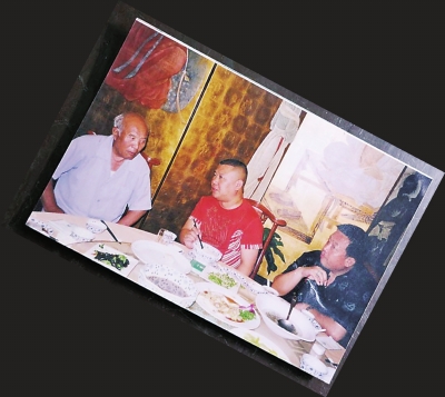 杨宝璋(左一)和郭德纲在谈论相声段子