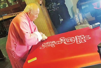 杨宝璋表演白沙撒字