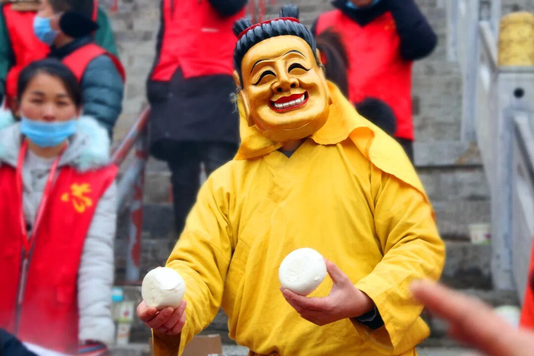 此外,结合景区特色,芒砀山旅游区还特邀众"傩神"一同向广大游客施粥,也算是求得福上添福。记者看到,领粥的地方都是人头攒动,排起了长龙,不少游客特地一大早就过来等待施粥。