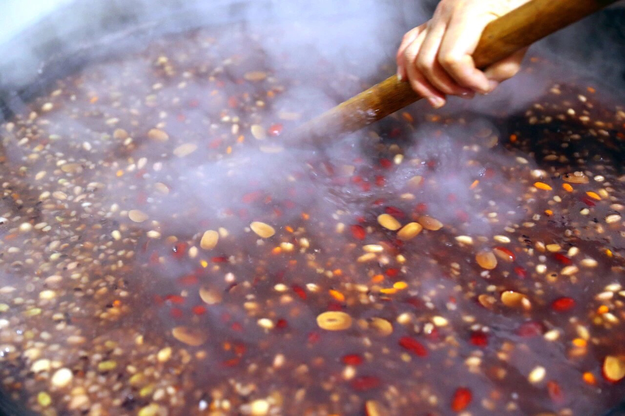 据景区负责人介绍,芒砀山的"福粥"从初七夜里就开始起火熬制,腊八粥注重养生,精挑细选了十余种配料,配以殿前的甘露泉水熬制,寓意非凡。