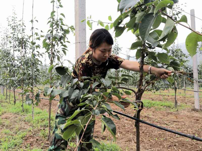 "像一般的梨树,如果挨得太近营养就会不够,甚至不容易成活。我们研发这个项目,就完全解决了这个问题。"李萱萱向记者介绍,这是"乔砧密植",是沙梨种植的创新模式,一般能够令果树增产30%~40%。"通过我和父亲的带动,现在我们洛宁县基本全用的是这种新的品种和栽培技术,像七八分不到一亩的地,都能收成一万多,非常可观。"新品种、新技术带动整个洛宁县唱响了富民曲。