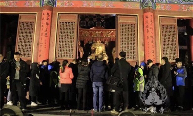 除夕夜,在少林寺院内举行供灯撞钟祈福活动,闻少林钟声迎新春,祈福家人身体健康、事业有成。