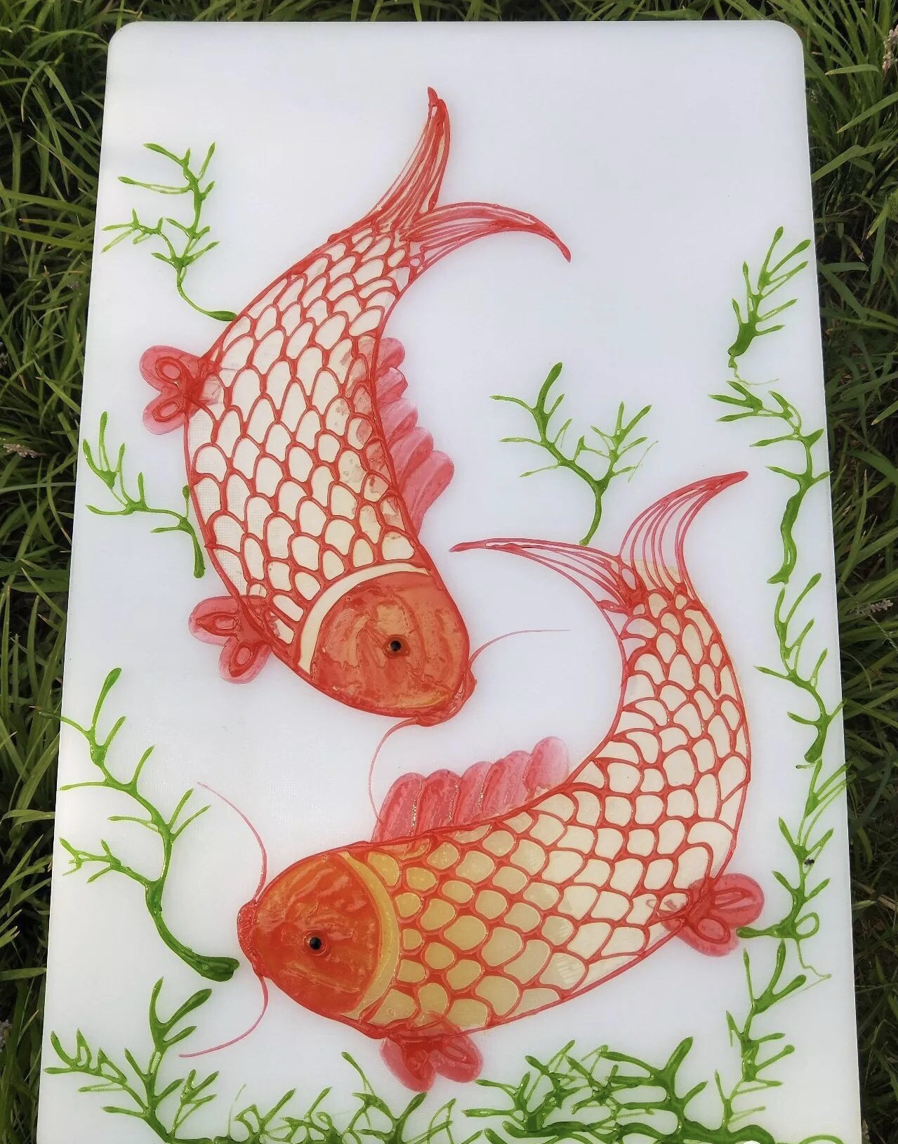 谈及自己的创作,刘胜利说,"我已经做了20年糖画了,糖画主要在于它的美观和食用,讲究的是提、顿、放、收的动作。传统题材一般是十二生肖、飞禽走兽、花鸟鱼虫等形象,特别是游龙戏凤最受欢迎。随着时代的发展,传统技艺也要跟上时代潮流,我们也会制作当下时髦的比如小猪佩奇、机器猫等形象。"