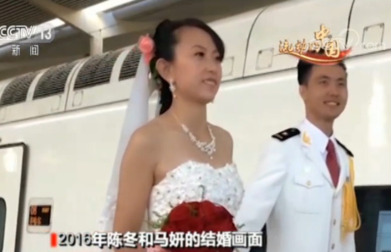2015年哈齐高速铁路开通后,两人因工作结识;2016年,高铁当婚车,陈冬从哈尔滨把马妍娶回了大庆。从此两人的工作里都多了一份甜蜜,但也开始了聚少离多的日子,每一次见面,都格外珍贵。