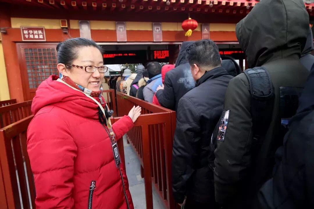 春节期间,清明上河园全体员工上岗,除了在岗的一线员工,其余员工都要在门前进行引导。在售票厅内,售票员不仅数钱数票,还微笑解答游客的第一波问题;在门检岗位,门检小姐姐们的微笑服务始终如一, 引导游客过闸机、检票、查验优惠票证件、扫码入园……