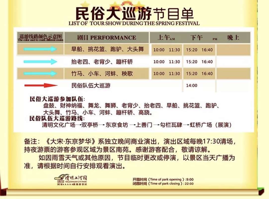 清明上河园景区在春节期间推出2019贺岁版《大宋·东京梦华》,场场爆满,人气十足;同时,景区还准备了财神纳福、高台花鼓、民俗演出等,营造出春节期间独有的喜庆氛围,年味儿十足。