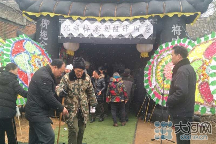 大河网讯 2月18日上午,天空飘着雪花,叶县常村镇第二敬老院的20多名老人不顾劝阻,来到西刘庄村党支部书记刘随伸的灵堂前,要送刘书记、他们的院长最后一程。