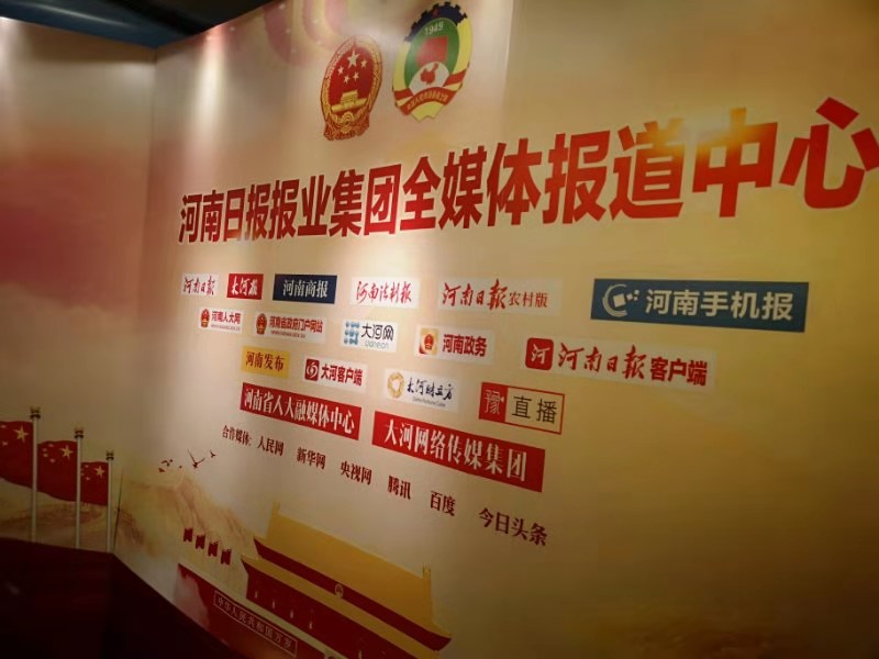 位于河南代表团驻地的河南省人大融媒体中心展示着报道今年大会的大型专题