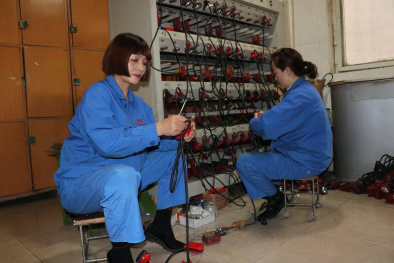 黄梦茹还带领工友们开展“修旧利废”活动。“换下来的旧矿灯,我们都是一盏一盏进行检查,凡认为能够重新使用的都认真细致地进行维修、放电,在确保质量的前提下,更换下来的矿灯有三分之一重新投入使用,为矿上节约资金数万元。”对于无法再利用的报废矿灯,黄梦茹她们也不是放弃不管,而是将每一盏废灯里面有用的零部件拆卸下来,作为配件重新使用,多年来,修复灯线一千多根,并拆卸了大量螺丝、帽钩、充电板、开关及灯碗等配件。
