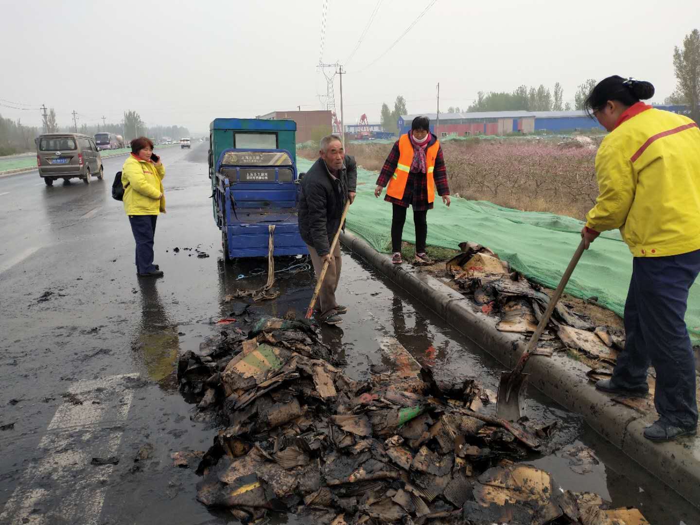 4月4日上午,刘卫红和她的两位同事翟喜梅、张翠莲上班途经开封第一大街,突遇一辆载满纸箱的电动车起火,看到驾驶电动车的老人在空旷的大路上独自扑火,3人迅速停车赶过去帮忙。