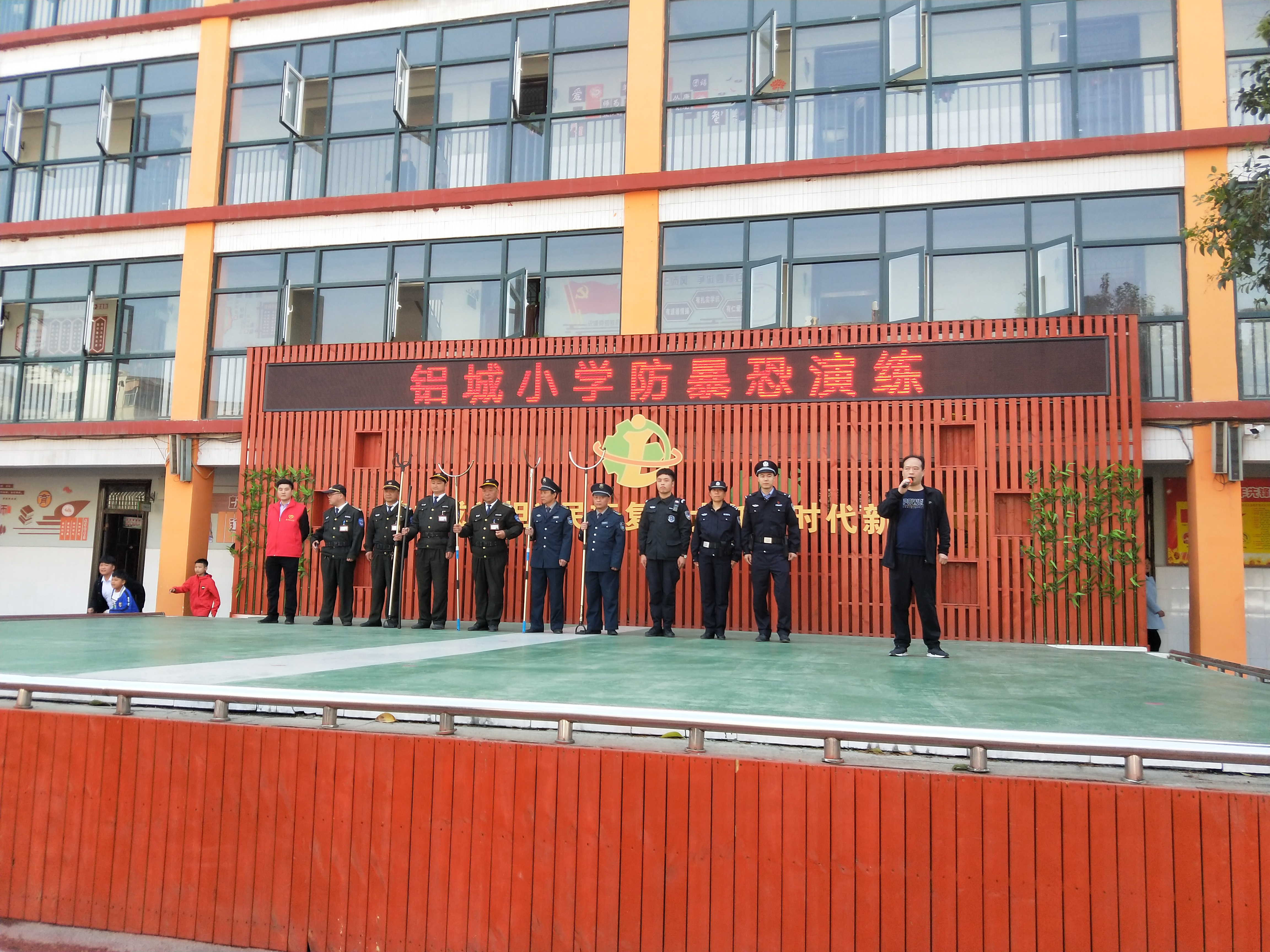 大河网讯 为提高校园暴力事件的处置能力,切实做好“平安校园”建设,营造安全、和谐的教书育人的环境,4月16号上午,在济源所副所长戴斌的指导安排下,社区民警都明明、张巧云,辅警李聪鸽在铝城小学开展校园反恐演练。