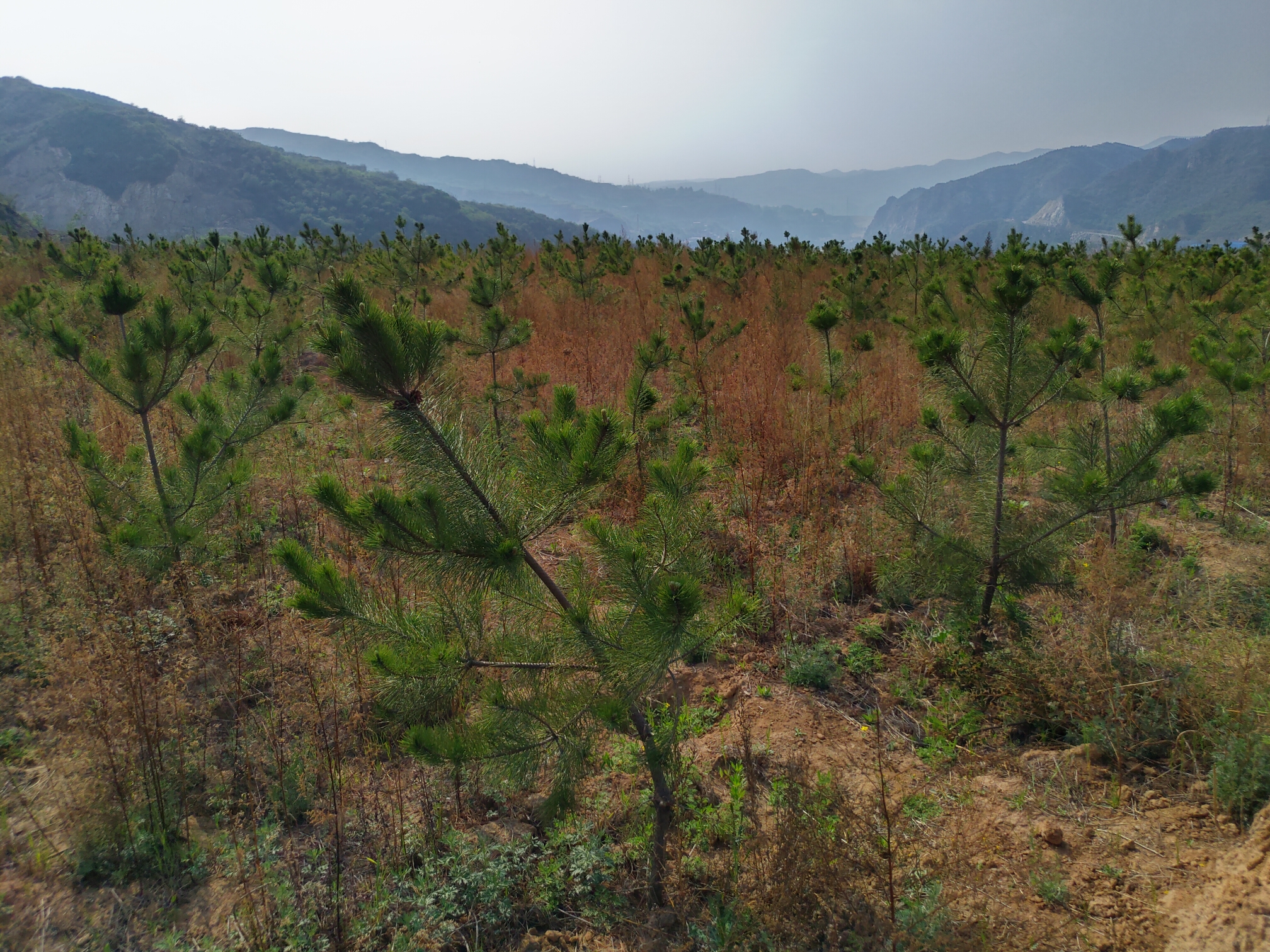栽种油松7.57万棵、侧柏12.58万棵、白皮松1.2万棵,蜀桧0.9万棵,连翘3.2万株,撒播草籽7800公斤;