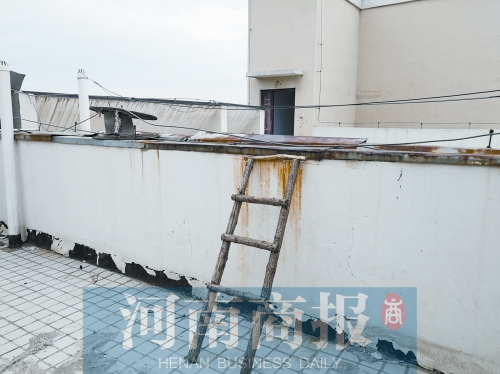 碰到一个单元内电梯都“罢工”的情况,一些住在高层的业主不堪爬楼梯之苦,便到旁边单元坐电梯到顶楼,翻越楼顶天台上单元与单元之间的缝隙,然后从顶层走步梯回家。在C2栋3单元楼顶,河南商报记者看到,因为单元与单元之间有防护用的围墙,为了方便翻越,业主们还在护栏旁边竖立了梯子。“楼中间有缝,虽然用铁皮封着,但是也很危险。”李女士说。而在水岸鑫城一名业主拍摄的视频中,几名儿童在大人的帮助下,正在翻越单元之间的缝隙。