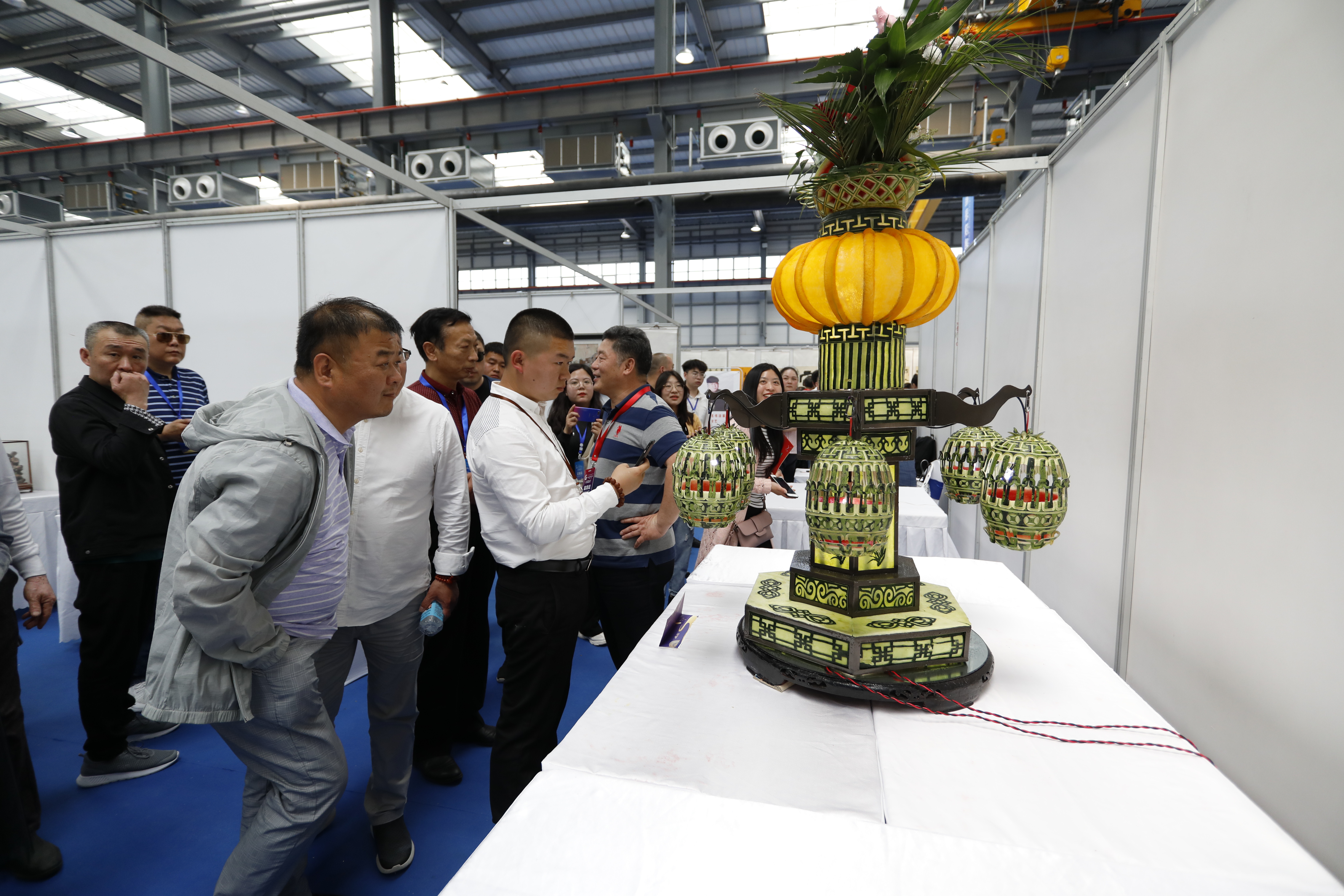 雕刻工艺展示区吸引了大量与会代表驻足。