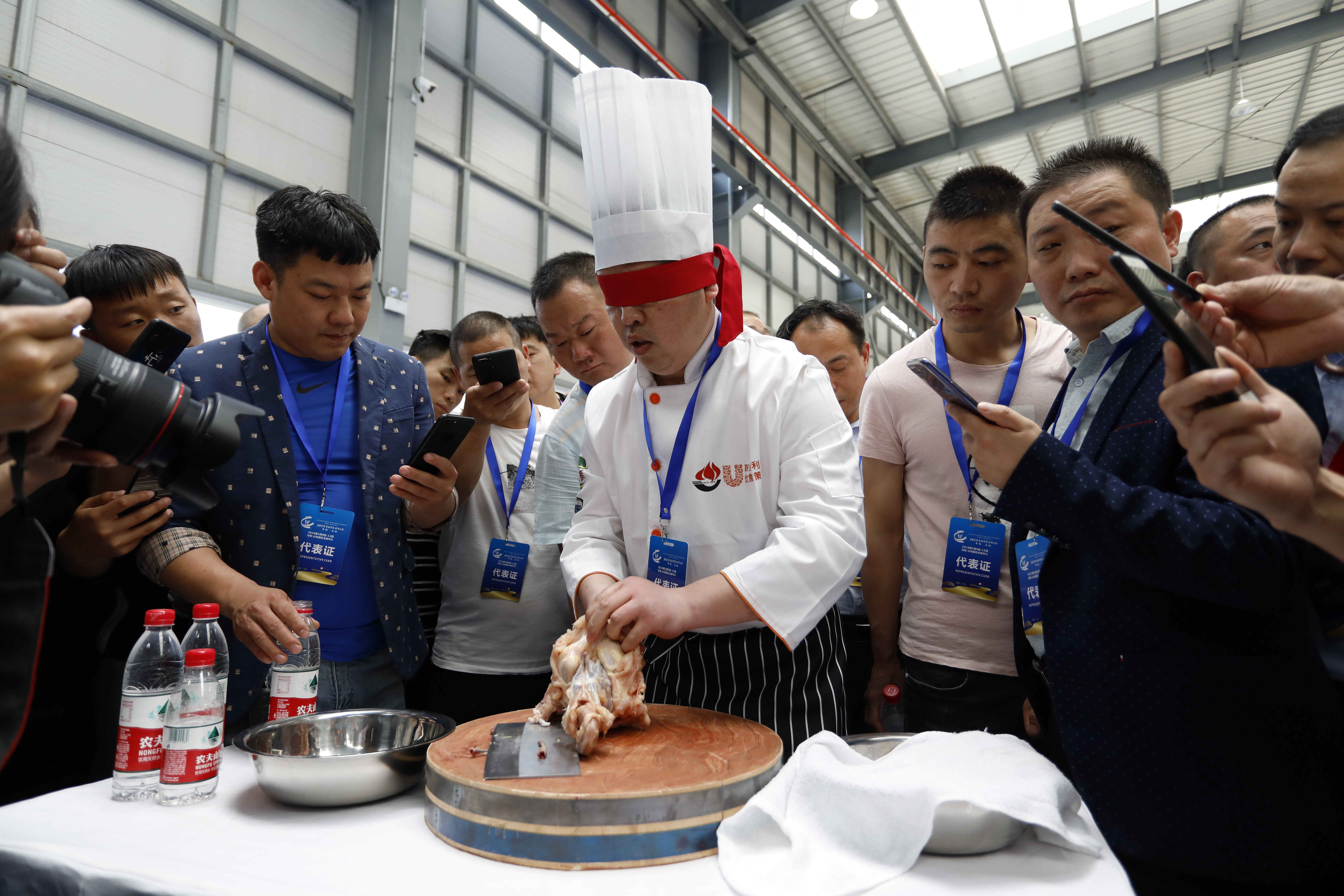 整鸡快速成菜技能比赛现场,众多名厨纷纷拿出自己的看家本领。