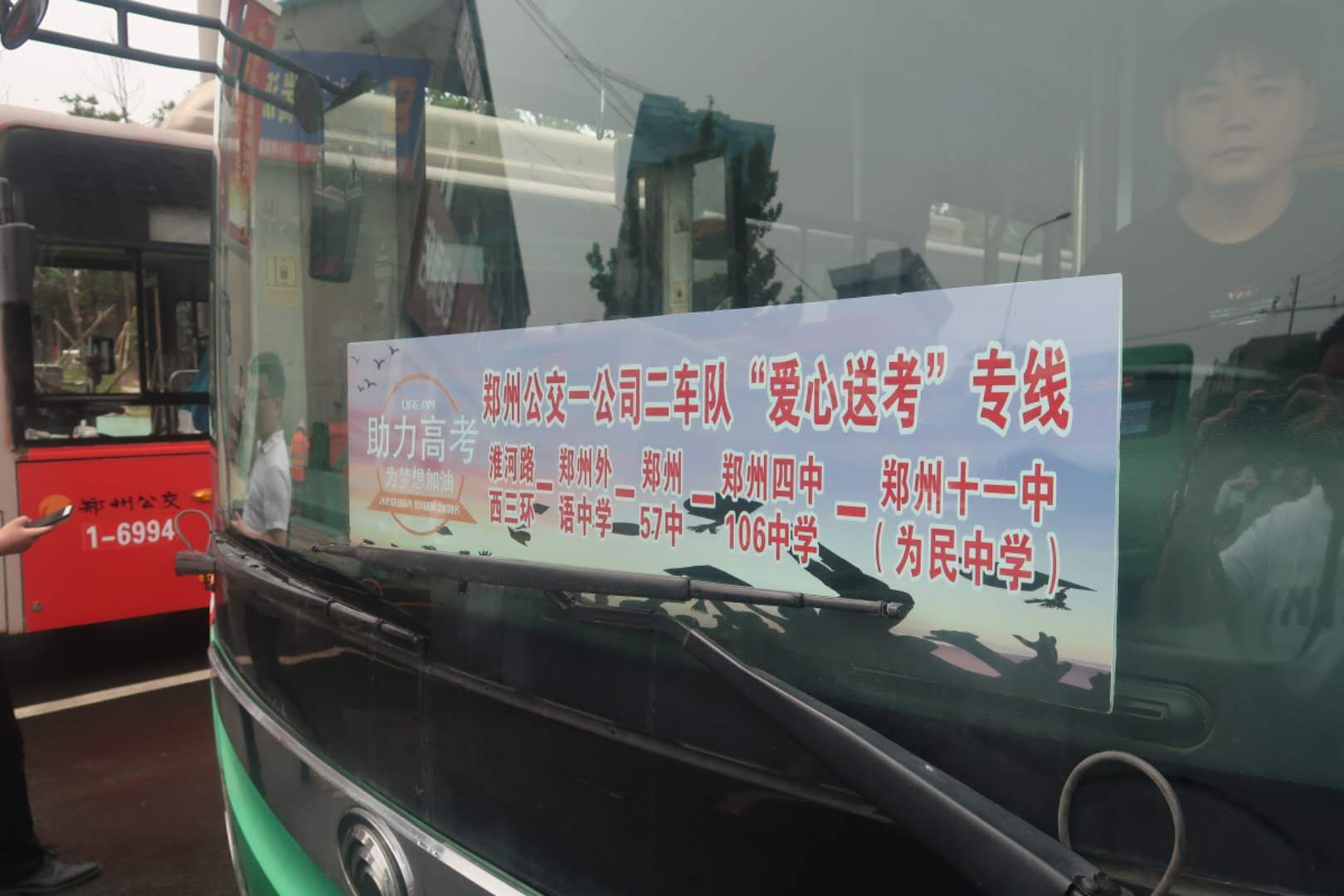 此外,郑州公交一公司高考期间免费开通三条“爱心送考”专线一站直达考点,相关专线车辆全部使用低碳环保无噪音的宇通纯电动公交车辆,车辆前挡风悬挂“爱心送考”专线标识,车辆中途沿线行驶过程中,考生可在就近站点招手上车。爱心送考专线发车时间为6月7号、8号上午7:00,下午发车时间为13:00。如需乘坐的考生和家长,也可拨打电话0371-67983505提前预定。